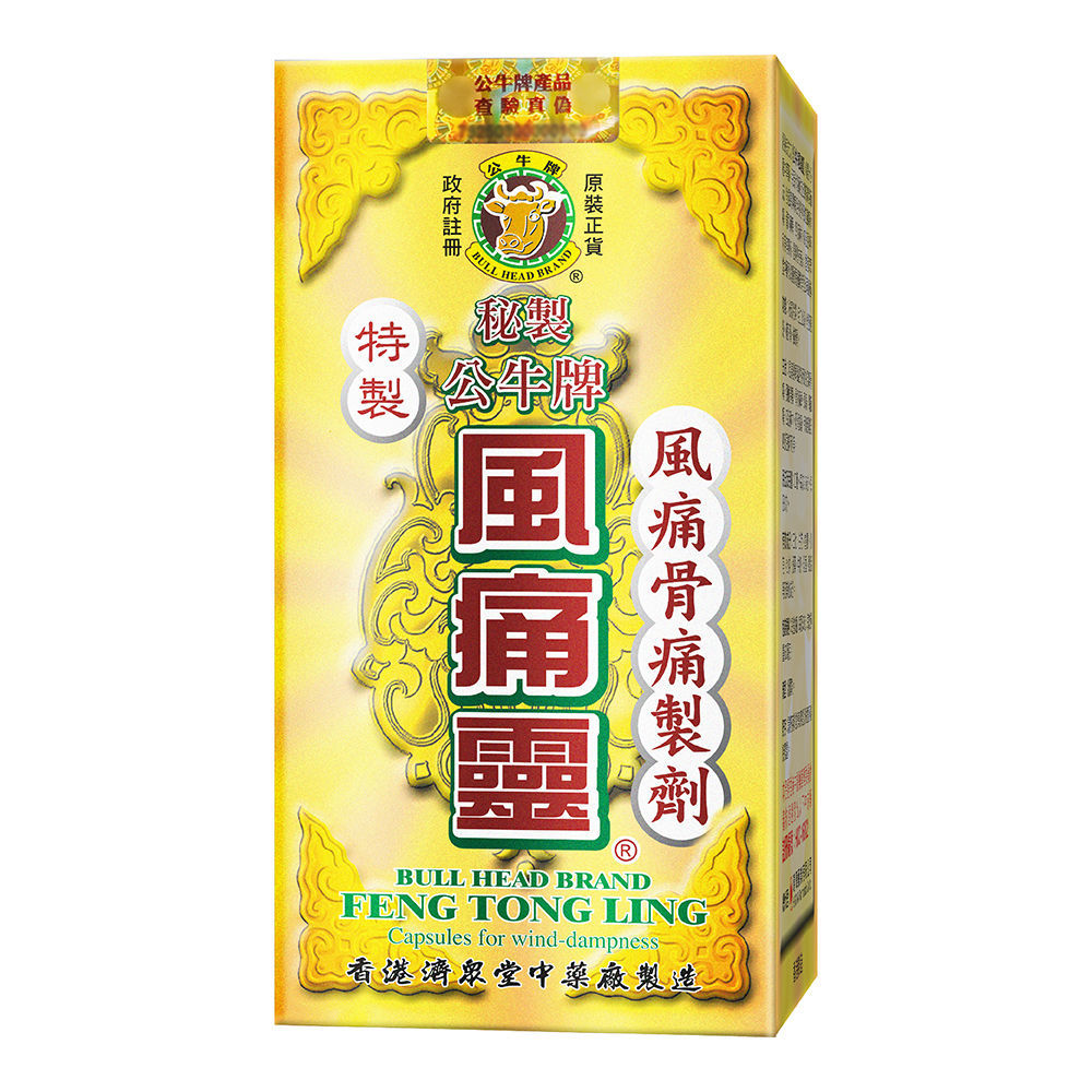 經驗良方之《公牛牌風痛靈》精選十多種中草藥,用現代製藥方法濃縮精製而成,對風寒濕痺阻經絡所致的風痛骨痛、骨刺麻痺、四肢麻木、四肢屈伸不利等有療效。證明書持有人:香港濟眾堂中藥廠(鴻運貿易(國際)有限公司經營)