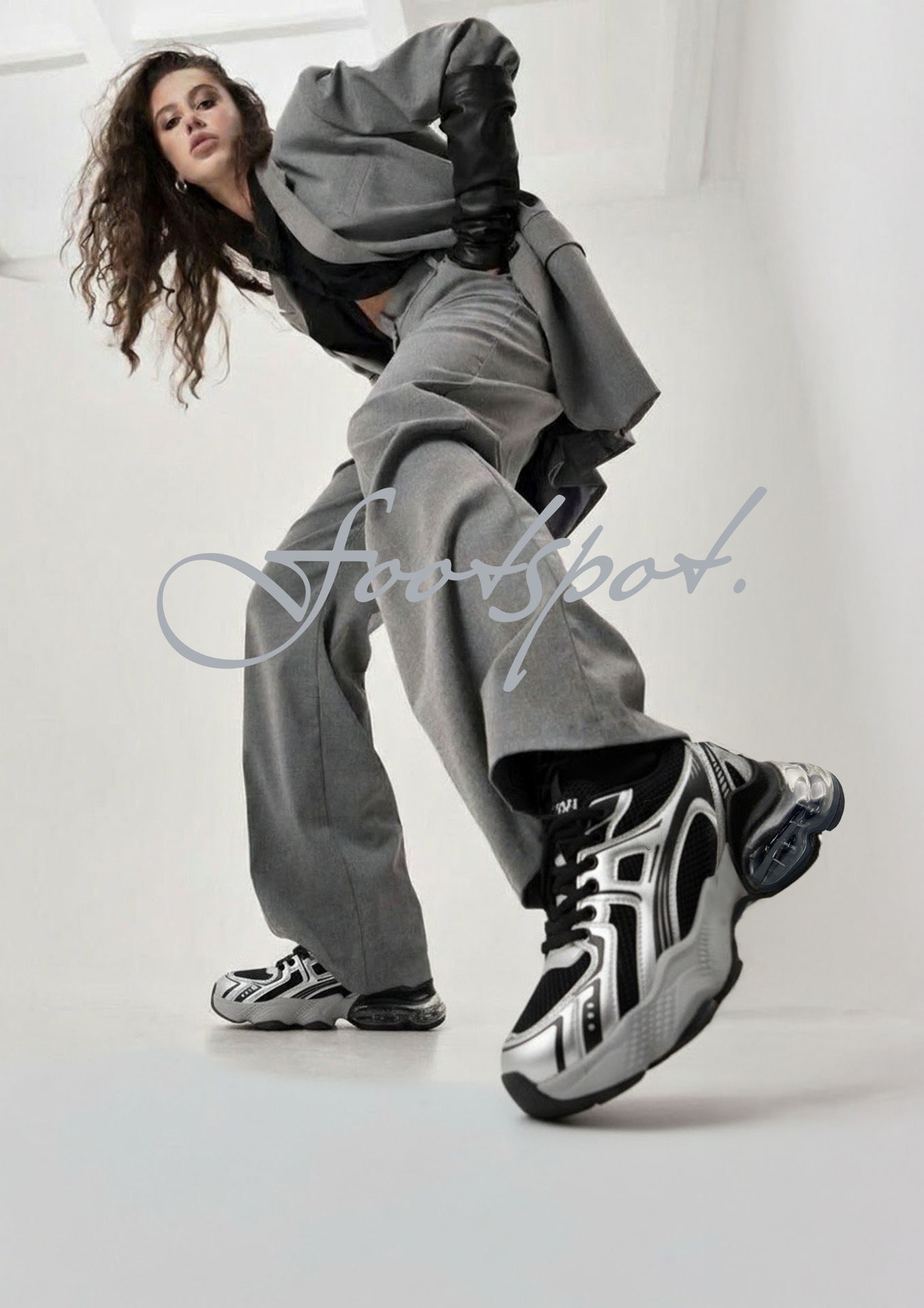 圖片中的鞋款為黑銀配色。