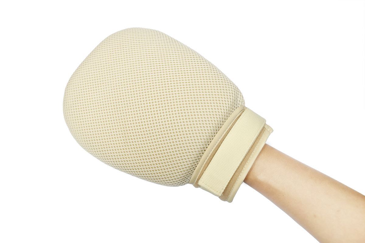 -內藏柔軟人造纖維綿,用以限制手指的亂抓