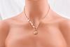 這款獨特的個性頸鍊一邊配有手工串珍珠,一邊飾有鏈條配搭。再配上通花鑲貝母吊墜及OT扣。這款項鍊也是理想的成年禮、生日或節慶禮物。