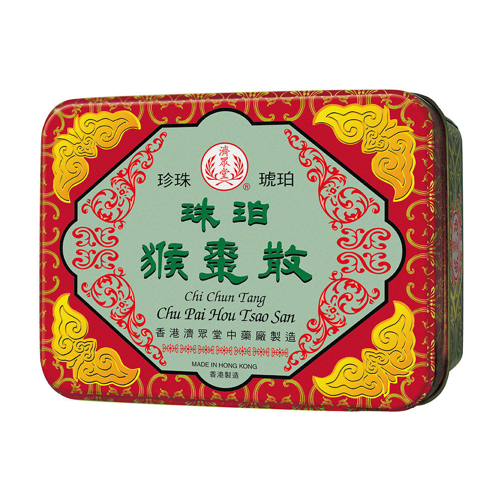 〈濟眾堂〉珠珀猴棗散乃源自本堂經驗良方,精選藥材製造而成。藥效清熱化痰止咳,用於嬰孩外感發熱,痰涎壅盛,夜啼驚跳,煩躁不寧,服用〈濟眾堂〉珠珀猴棗散能疏風解表,消食化積,確為陪伴小兒成長的必備良藥。證明書持有人:香港濟眾堂中藥廠(鴻運貿易(國際)有限公司經營)
