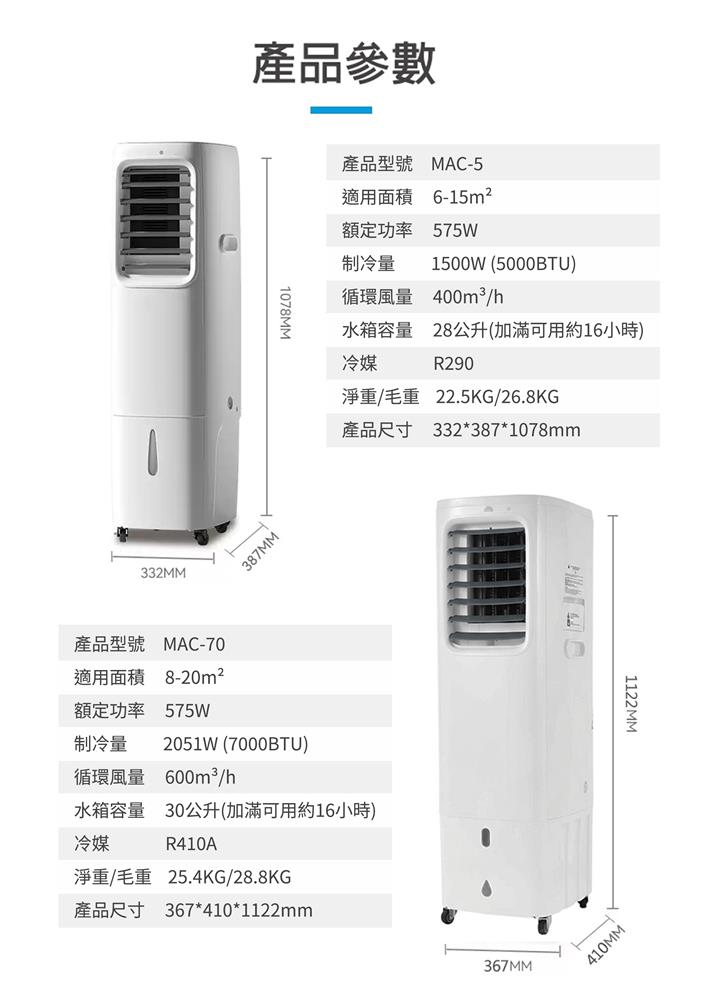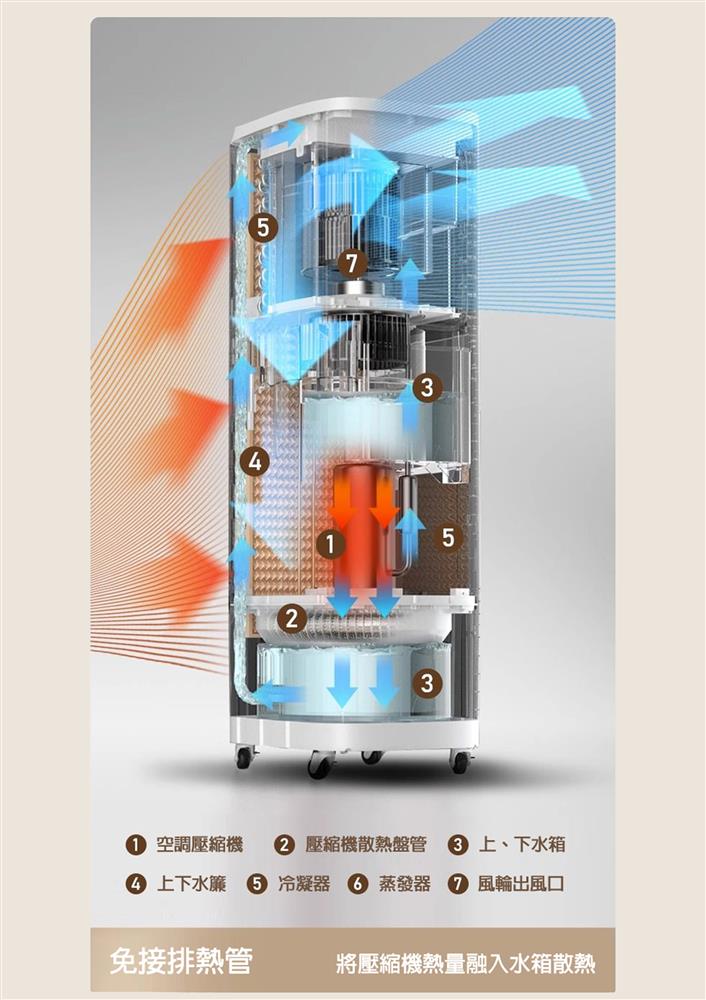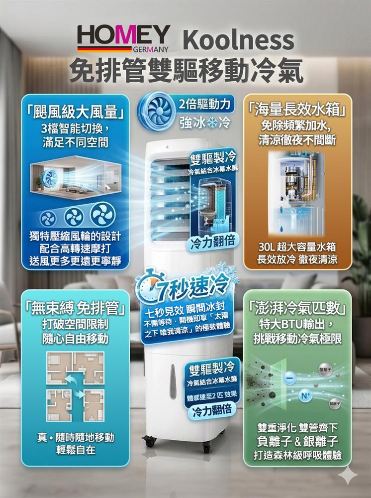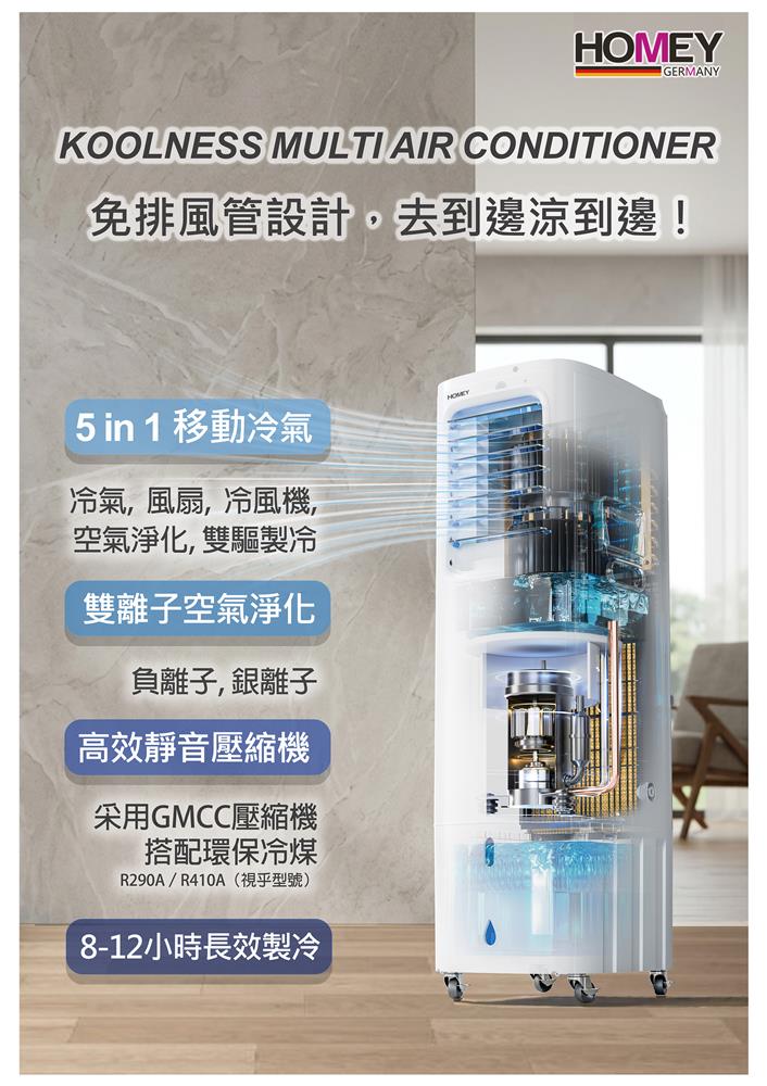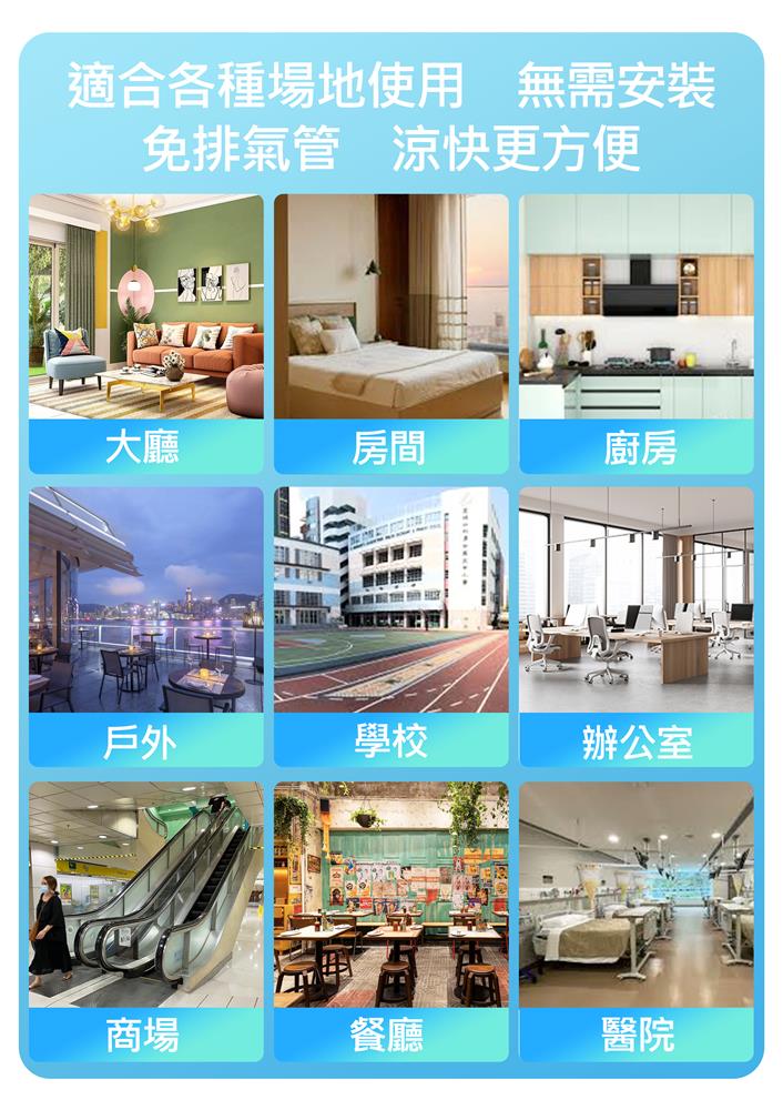 5 IN 1 功能: 冷氣 + 風扇 + 冷風機 + 空氣淨化 + 雙驅製冷